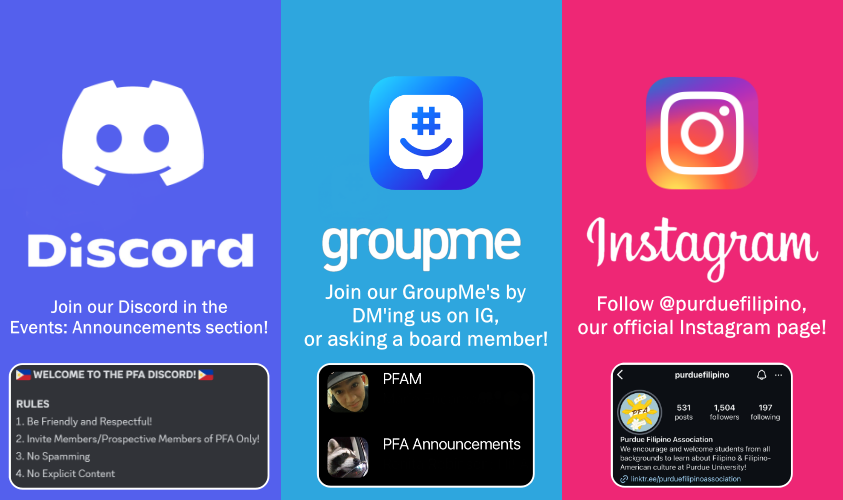 Instagram is one of the best ways to stay up to date with upcoming events! Make sure to follow us on Instagram here @purduefilipino!